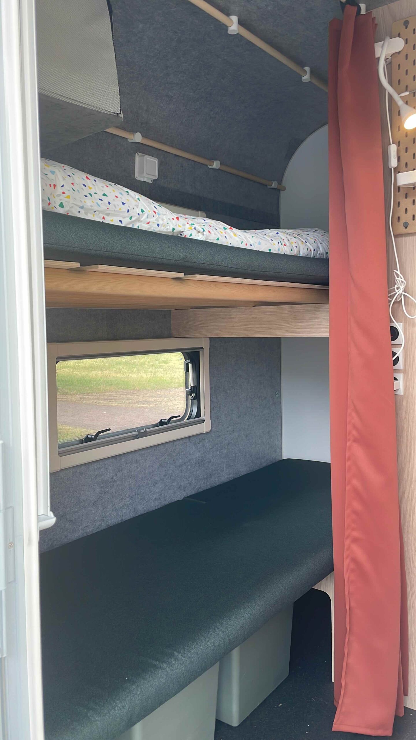 De bergruimte in de caravan is flexibel. Het zijn slimme opbergoplossingen die zo uit een Zweeds woonwarenhuis lijken te komen. Zo zien we hangkasten van stof en ook de opbergbakken die we al kennen uit de eerder Aviva’s zijn terug.