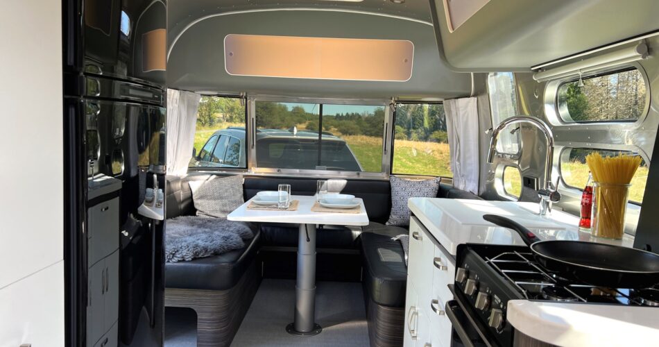 Ook keukenprinsen- en -prinsessen komen aan hun trekken in de iconische caravan. Het keukenblok is voorzien van een ruim werkblad met rvs-spoelbak, een driepits gasfornuis, oven en grote koelkast met vriesvak. Ook hier zien we veel lades en kastjes voor servies en kookgerei.