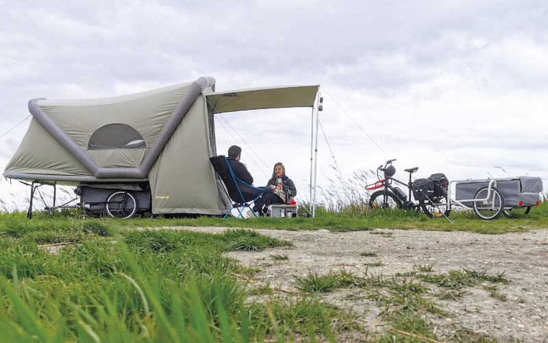 Misschien denk je na het lezen van het bovenstaande stukje wel dat je je de tandjes moet trappen met de B Turtle achter je fiets. Nou, dat valt reuze mee. Mits je hem achter een e-bike hangt. De B Turtle fietscaravan heeft een totaalgewicht van 29 kilo en is compleet met tent 73 centimeter hoog. Dat maakt hem stabiel bij zij- en tegenwind. De bagagebak heeft een inhoud van 120 liter, dus je kunt naast je slaapzak en kussen nog aardig wat kleding meenemen. De bak is zowel tijdens het rijden als in de kampeermodus gemakkelijk bereikbaar.