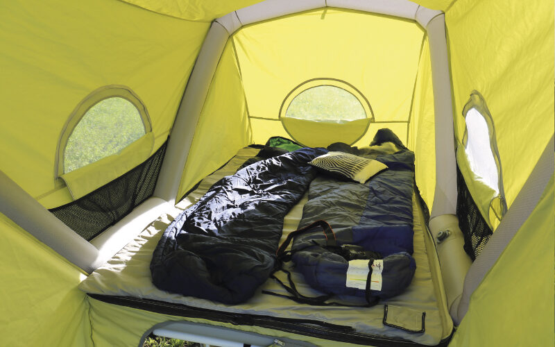 Na een flinke fietstocht moet je natuurlijk goed uitrusten. Daar is bij de B Turtle fietscaravan aan gedacht. Allereerst is er de voortent met luifel, waarin je droog en uit de wind kunt zitten. Slapen doe je op in het bed van 2,10 x 1,30 meter, wat in principe groot genoeg is voor twee personen.