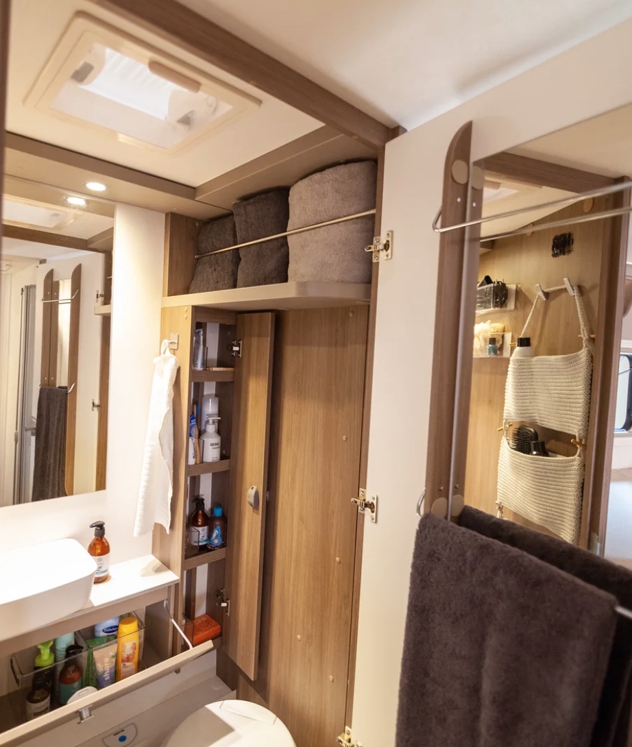 Isabella Franke heeft ook ideeën om de badkamer in de Carado netjes te houden.