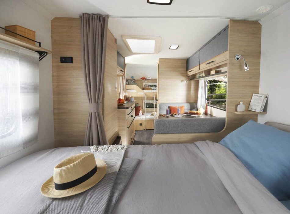 Tot slot de Antares Titanium en Artica. Caravelair laat deze series in modeljaar 2023 vrijwel ongewijzigd. Geen gekke gedachte, aangezien deze modellen al een hoog uitrustingsniveau hebben. De Antares Titanium blijft verkrijgbaar als 450, 455 en 470, dus de koper heeft blijft keuze houden tussen enkele bedden, een vast tweepersoonsbed en een queensbed