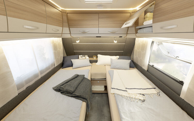 De Camper is een echte gezinscaravan, maar de Avantgarde-uitvoeringen van de 460 EL en 510 LE richten zich speciaal op reizende koppels. Toch is vooral deze laatste ook een prima metgezel voor families. De 510 LE is 7,62 meter lang en 2,30 meter breed. Hij heeft een maximaal toegestaan gewicht van 1700 kilo. Het laadvermogen is 453 kilo. De eenpersoonsbedden achterin zijn met een breedte van 85 centimeter en een lengte van 2 meter behoorlijk ruim. En voor de kinderen – of logees – tover je de comfortabele loungezit in een handomdraai om in een tweepersoonsbed.