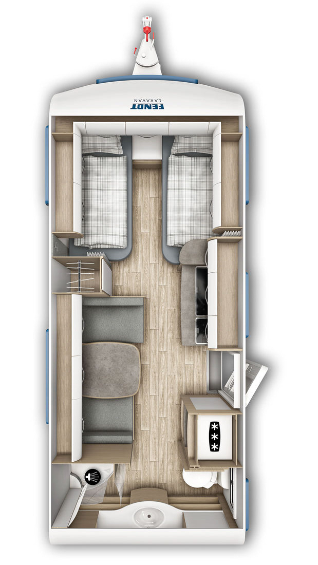 De Bianco is de populaire modelserie van Fendt. De Duitse caravanbouwer komt in 2024 met een nieuwe indeling met eenpersoonsbedden: de Fendt Bianco Activ 515 SGD.