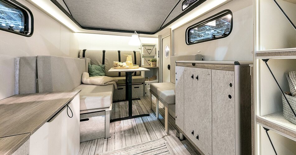 Elektrische voertuigen hebben de toekomst en dat is dan ook iets waar de caravanbranche zich terdege van bewust is. De Hobby Beachy Air is zo licht en aerodynamisch dat hij prima met een elektrische auto kan worden getrokken. De caravan is 3,50 meter lang, weegt slechts 500 kilo en heeft een toelaatbaar totaalgewicht van 750 kilo. Door zijn hoogte van 2 meter is hij compact om mee te rijden. Het pop-up hefdak zorgt voor een stahoogte van 2,15 meter. Tot zover de specificaties, want behalve compact, licht en aerodynamisch, is de Hobby Beachy Air gewoon heel erg leuk! Tenminste, dat vinden vrouwelijke leden van de Campingtrend-redactie.