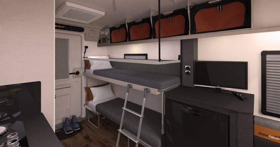 De Basecamp 2 is prima geschikt voor koppels. Maar er zijn natuurlijk ook gezinnen die van avontuurlijk kamperen houden. Daarom kwam Swift met de Basecamp 4. Deze is een halve meter langer dan zijn kleinere broertje. De keuken is opgeschoven naar het midden en achterin is een kleine zithoek gemaakt. Deze is om te bouwen tot een stapelbed dat je kunt afscheiden door middel van een gordijn. Handig én leuk voor de kids.