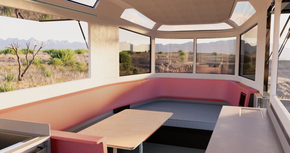 Qua vormgeving is de elektrische caravan op zijn zachtst gezegd opmerkelijk te noemen. Na vele uren in een windtunnel te hebben doorgebracht, meent de fabrikant een caravan te hebben ontwikkeld die drie keer zo aerodynamisch is als een vergelijkbaar exemplaar. Tijdens het rijden schuift het bovenste deel van de caravan over het onderste deel, waardoor de luchtweerstand veel lager wordt. Uitgeschoven heeft de caravan een totale hoogte van 3 meter, in rijmodus is hij ongeveer een meter lager.
