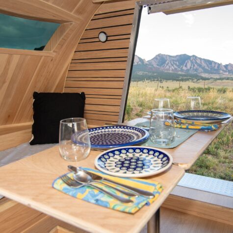 Colorado Teardrops is er ondanks het geringe oppervlak in geslaagd vier slaapplaatsen te creëren. De tafel in het midden is om te bouwen tot een tweepersoonsbed van 1,98 meter en 1,52 meter breed en ook van beide zitbanken kun je een bed maken.
