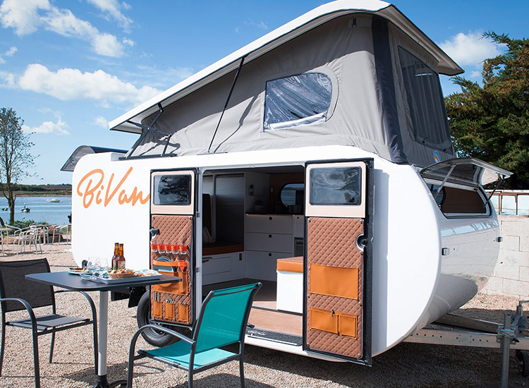 Wie twijfelt tussen een caravan en een kampeerbusje is vast gecharmeerd van de BiVan. Deze caravan van het Franse Bivoak biedt het beste van twee werelden. De BiVan heeft de indeling van een busje, de ruimte van een caravan en de dubbele deur is een duidelijke knipoog naar de legendarische Volkswagen T1.