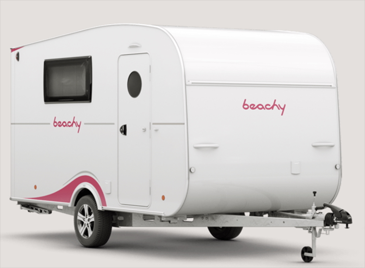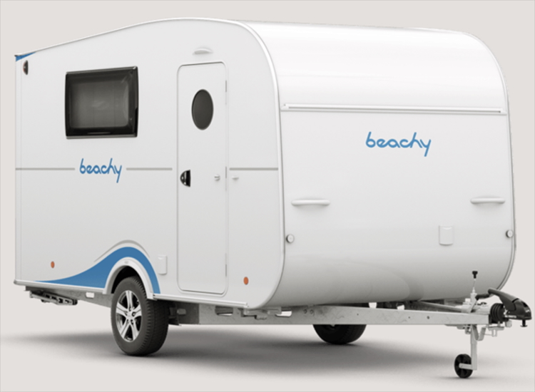 Hobby lanceerde de Beachy drie jaar geleden als ‘het strandgevoel op wielen’. Doel was het vanlife-gevoel te vertalen naar een caravan. De Beach is er in drie indelingen: 360, 420 en 450. Deze plattegronden hebben de ronde vorm en de grote achterdeur gemeen. Dit laatste is geïnspireerd op de kampeerbus: op het bed zitten en naar buiten kijken om zo het ultieme vakantiegevoel te beleven.