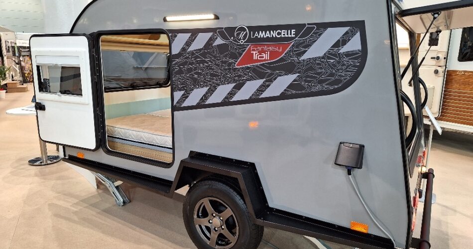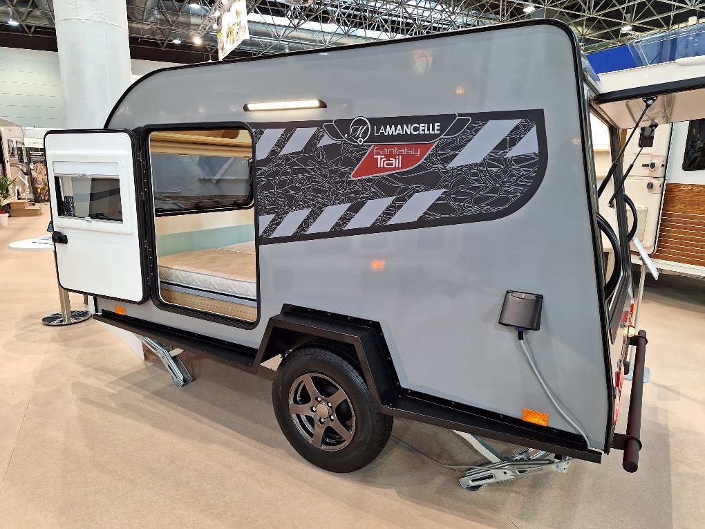 De Fantaisy is instapcaravan van het merk. Eerder dit jaar kwam La Mancelle nog met een stoere variant, de Fantaisy Trail. Met deze minicaravan richtte de fabrikant zich op avonturiers die een beetje comfort toch wel fijn vinden. De kleinste Trail is 3,02 meter lang, 1,70 meter breed en weegt 750 kilo. Veel meer dan een tweepersoonsbed met bovenkastjes en ledverlichting past er niet in. Koken en plassen doe je buiten, maar is dat niet precies wat kamperen zo leuk maakt?