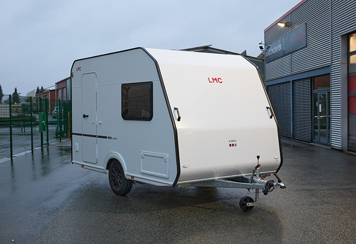 De LMC e:dero is speciaal ontworpen voor kampeerders die graag een beetje comfort ervaren, maar wel de essentie van het kamperen willen behouden. De caravan is in eerste instantie beschikbaar in drie indelingen; twee voor koppels en één gezinsvariant voor maximaal vier personen. Het kleinste model, de e:dero 350 D, weegt nog geen 750 kg. Dit maakt hem geschikt voor achter een elektrische auto.