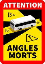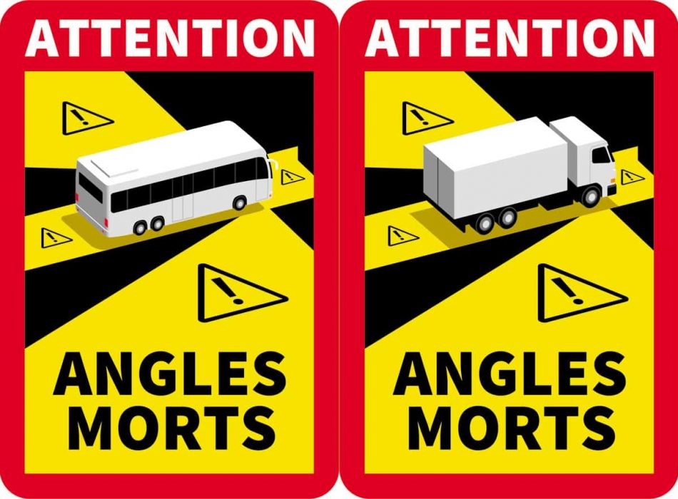 Il existe deux versions de la signalisation angles morts, dédiées à deux types de véhicules distincts, les transports de marchandises et les transports en commun de personnes.