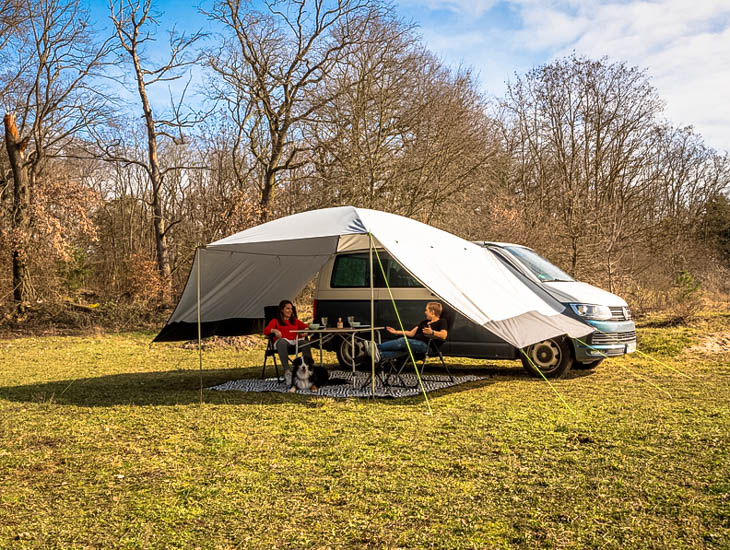 Natuurlijk, er zijn ook camperaars die liever kiezen voor een voortent. Ook daar kunnen prima redenen voor zijn. Kies je voor de luifel en wil je net iets meer dan schaduw? Kijk dan eens naar de Mauritius Premium. Bij een hoosbui blijf je droog en de schuifdeur hoeft niet dicht. Ook als het waait kan hij blijven staan. Daar komt nog bij dat de Mauritius Premium meteen voor privacy zorgt.