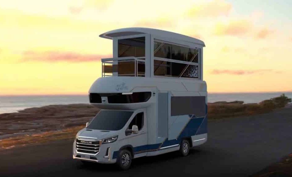 Natuurlijk kennen we de dubbeldekkers die rondrijden in Londen. En we lieten hier ook al een Australische truckcamper met twee etages zien. In China hebben ze nu ook zo’n bijzondere camper. De Saic Maxus Life Home V90 Villa Edition is namelijk een dubbeldekker. Aangekomen op de camping groeit hij niet alleen aan de zijkant, waar de slide-outs naar buiten schuiven. Hij groeit namelijk ook de hoogte in, want er schuift zomaar een tweede verdieping uit het dak. Of hij echt is of alleen bestaat als computeranimatie? Het concept is in ieder geval helemaal uitgewerkt.