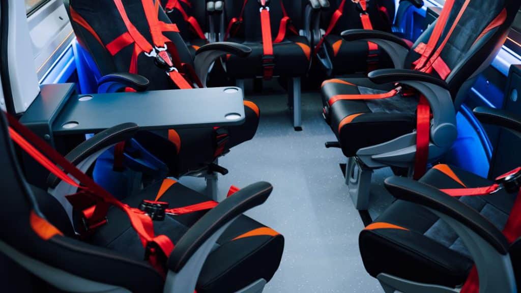 De Torsus Terrastorm 4×4 staat op dikke 17 inch Delta-velgen. Daar liggen stevige BF Goodrich-banden om. De reservewielhouder achterop oogt lekker stoer en past bij het plaatje. Hetzelfde doet de bullbar met geïntegreerde lier voorop. Kies je voor de personenversie met ramen, dan rol je ook in het ruige terrein niet uit je stoel. Daarvoor zorgen de vijfpuntsgordels. De vier voorste stoelen zijn draaibaar, hierdoor kun je rond de tafel zitten. Deze staat tegen de zijwand. Tegen het dak bovenkasten voor bagage.