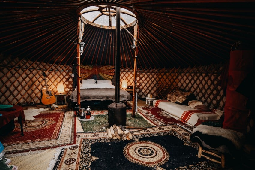 Overnachten in de traditionele en knusse yurts is een echte wildlife-beleving. De handgemaakte tenten uit Mongolië hebben een stevige isolatie. Het blijft in de tent de hele nacht heerlijk warm. Knus winterkamperen dus. De yurt is zeer ruim opgezet – 6 bij 6 meter – en traditioneel ingericht met comfortabele bedden, stoelen, kleden en een kastje.