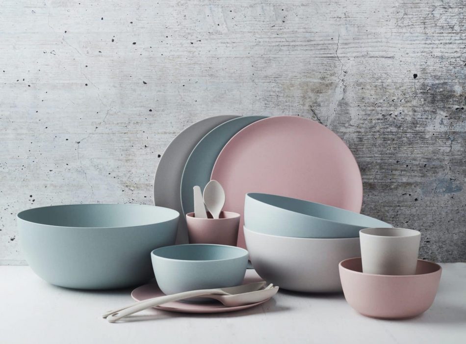 Het milieuvriendelijke designservies bestaat uit elegant vormgegeven mokken, kommen, borden en sla- en besteksets. Het is verkrijgbaar in de kleuren lichtgrijs, mistblauw en oudroze. Die kleuren zijn ook nog eens prima te combineren. Doordat het is gemaakt van plantaardige vezels en herbruikbare grondstoffen is het 100% recyclebaar. Biologisch afbreekbaar dus. Het servies – gemaakt van ruwe bamboe en PLA – is daarbij ook nog eens oersterk.