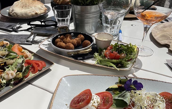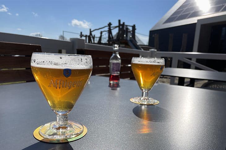 Het restaurant heet Piazza Nieuwvliet en is ook voor mensen buiten de camping toegankelijk. Een paar dagen voor we op vakantie gingen, mochten de terrassen weer open. Ons eerste terrasje pakten we op de camping en dat was zo heerlijk! Vooraf had ik een plekje voor ons gereserveerd. In de zon genoten we van een uitgebreide lunch, terwijl de jongens zich na het eten voor onze neus vermaakten op de trampoline. Het eten was echt heerlijk! Later in de week hebben we nog een keer een drankje gedronken op het terras.