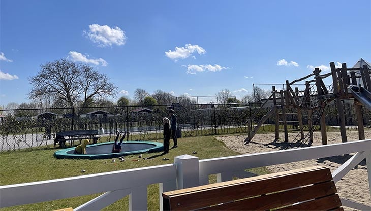 De kinderen kunnen vanaf het terras zo de speeltuin in rennen.