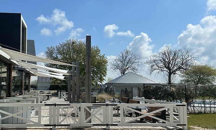 Volgens de website van de camping ligt het strand op 800 meter afstand. Vanaf onze staanplaats was het iets verder, maar we liepen er alsnog binnen een kwartiertje naartoe. De weg loopt via een fietspad en is prima te doen. Het strand is in één woord fantastisch! Meteen bij de strandopgang is een grote strandtent: de Boekanier. Door het beperkte aantal zitplaatsen vanwege de coronamaatregelen konden wij er helaas geen plekje vinden zonder reserveren.
