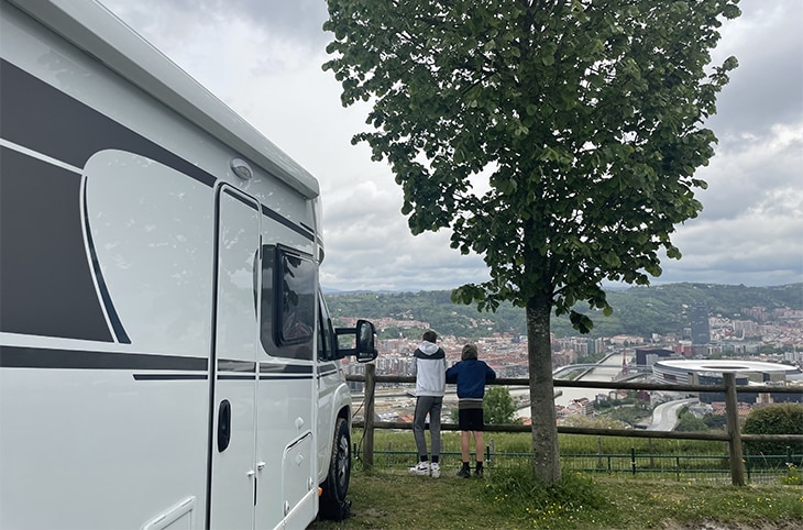 Een paar jaar geleden zag ik een foto van Bilbao, en van het Guggenheim Museum, en dat heeft me niet meer losgelaten. Ik moest en zou met mijn vriend en onze zoons een bezoekje aan deze stad in Spaans Baskenland brengen. Maar hoe? We zouden natuurlijk met onze eigen vouwwagen, een Campooz Fat Freddy, kunnen gaan. Maar dan was er nog die andere wens: een roadtrip met een camper. En hoera, het lukte om die twee wensen te combineren!