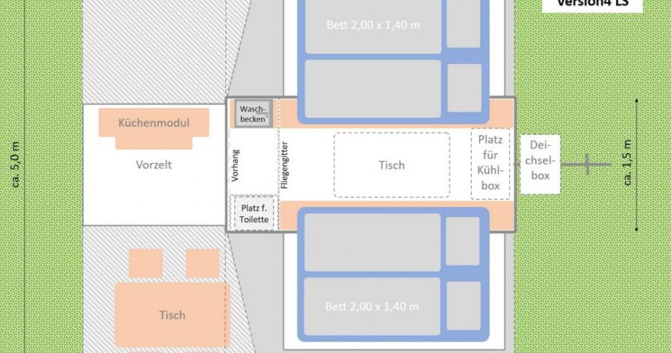 De LS is dus 50 cm langer dan de standaarduitvoering en komt nu op een binnenmaat van 3,05 x 1,42 x 1,53 meter. De voertuiglengte inclusief dissel bedraagt 4,43 meter. De Farfalla camper LS is 2,11 meter hoog en 1,92 breed. Het leeggewicht van de uitklapbare caravan bedraagt circa 600 kilogram (version4). Zonder uitbreidingen betaal je 17.750 euro voor de Farfalla camper LS.