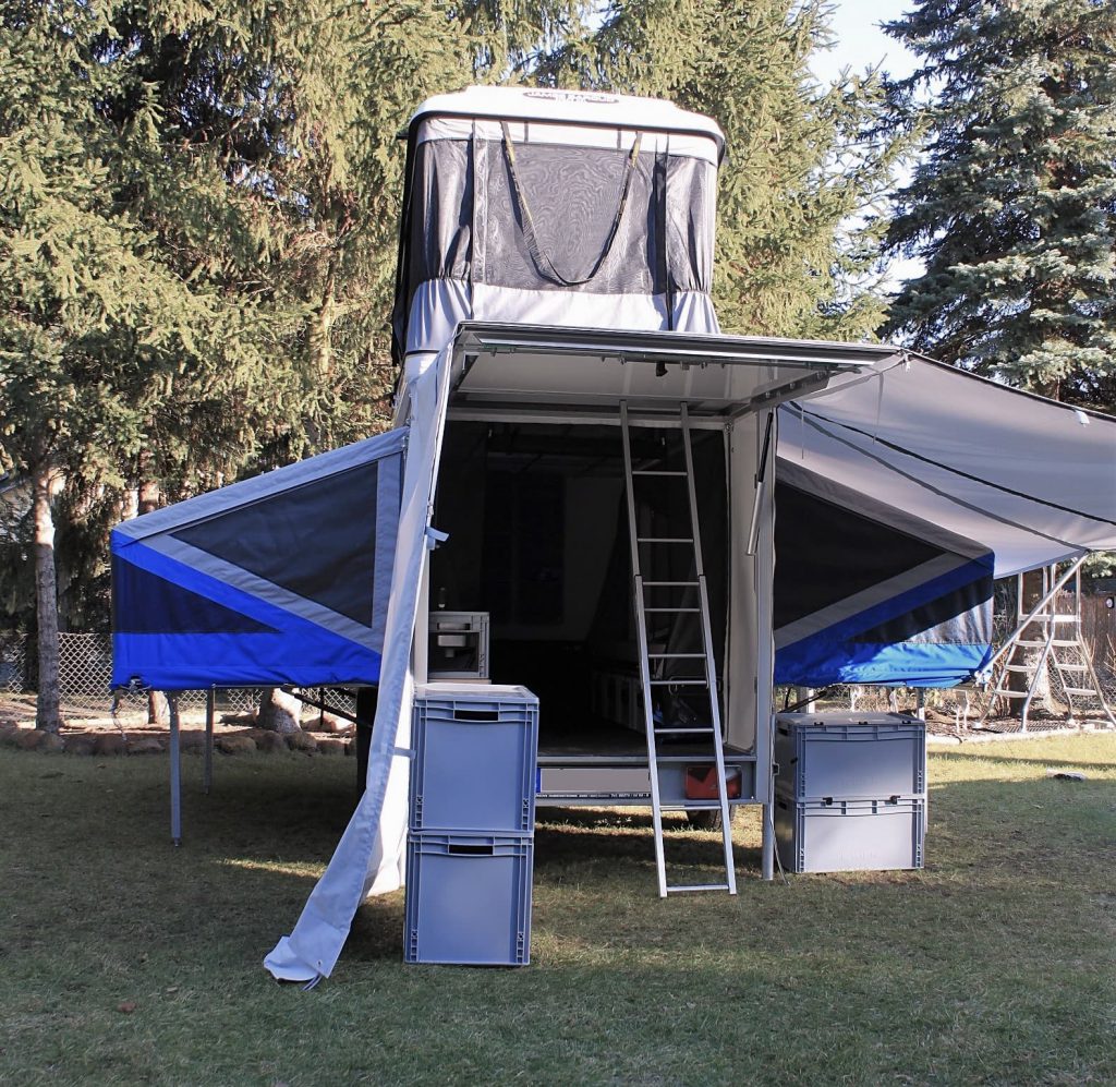 De Farfalla camper LS is naar wens aan te passen. Zo kun je zelfs lekker zonnen bovenop de uitklapbare caravan. Het dak is verstevigd, zodat er twee personen tegelijk op kunnen zitten of liggen. Privacy én een mooi uitzicht gegarandeerd. Geef je niks om een zonnedek, maar wil je extra slaapplaatsen creëeren, dan is er de mogelijkheid tot het plaatsen van een daktent.