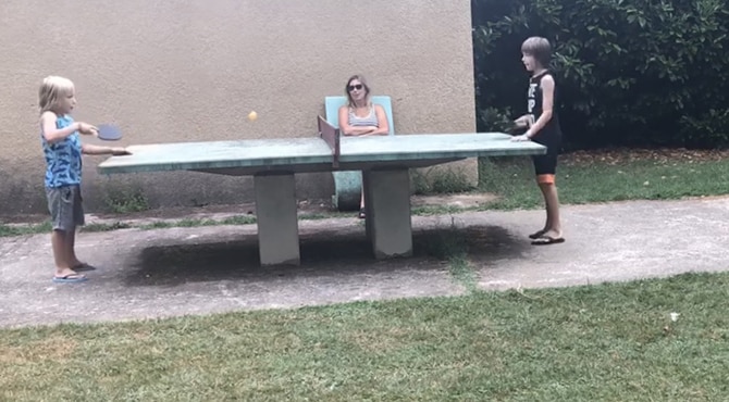 Er is trouwens ook een tafeltennistafel waar de boys en ik op onze eerste echte vakantiedag heerlijk wat potjes hebben gespeeld.