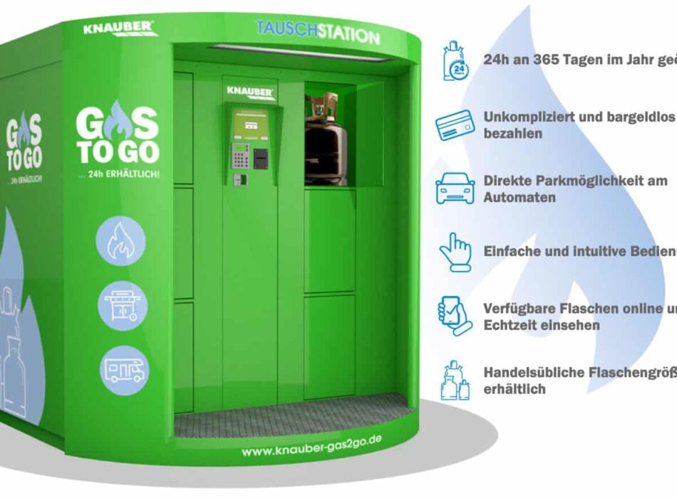 24/7 je gasfles omwisselen kan sinds kort op zeven plaatsen in Duitsland. Knauber Gas2go plaatst gasflessenautomaten in Duitsland en is druk bezig om het bereik uit te breiden.