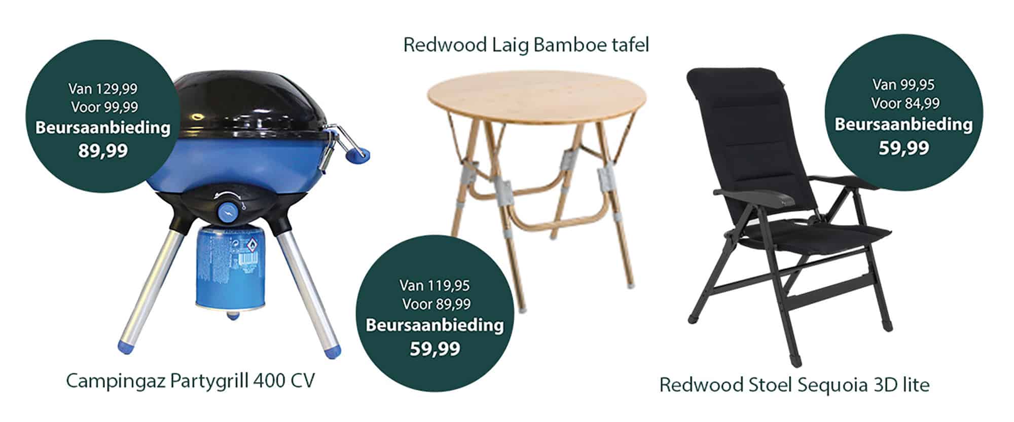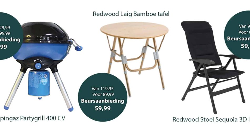 Lichtgewicht aluminium kampeermeubilair vind je onder meer bij de stand van Crespo. Geef je de voorkeur aan een natuurlijke look, dan zou je zomaar eens kunnen slagen bij Bo-Camp. En zoek je een Porta Potti of toiletvloeistof, dan moet je echt even langs de stand van Thetford lopen.