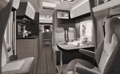Top bij de buscampers van Hobby – compleet met panoramadakraam – blijft de Vantana De Luxe. Deze staat op de nieuwe Fiat Ducato. Er is keus uit twee verschillende meubeldecors. Een lichte houttint of een modern zogenaand monochrome interieur. Dat heeft een wit/grijze kleurencombinatie. Erg modern.