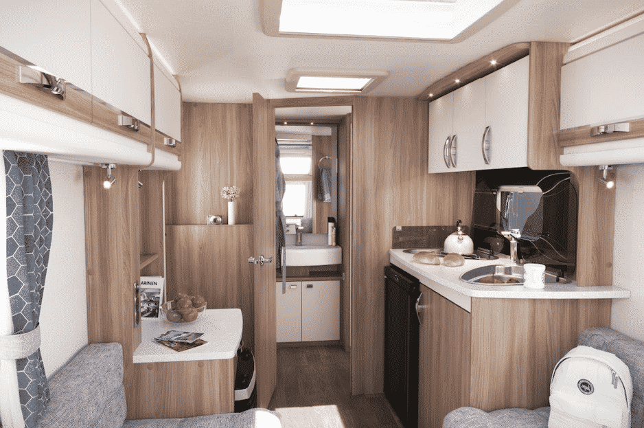 De Alpine Sport serie krijgt er voor het Sprite 2022 modeljaar een aantal extra usb-punten bij. Ze zitten mooi weggewerkt in de spotjes onder de bovenkasten. Zo heb je altijd een oplaadpunt voor je mobieltje bij de hand. Ook nieuw is de Dometic series 10-koelkast. De achterwand van de keuken krijgt een nieuw design. De achterwand is voorzien van downlight-verlichting in plaats van een geheel verlicht paneel.