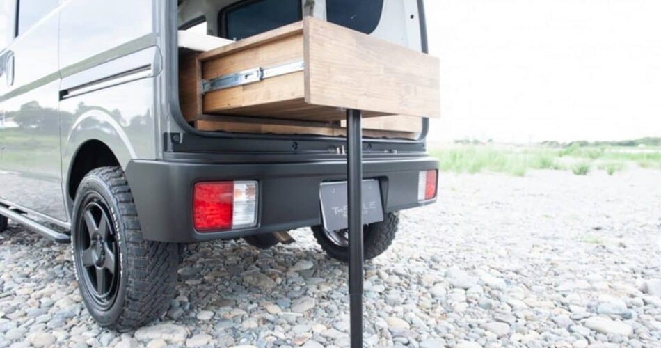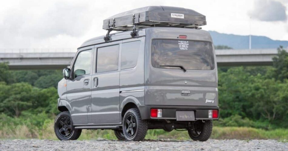 Neem wat onderdelen van de vierwielaangedreven Suzuki Jimny, het populaire jeepje van dit merk. Plak die op de Suzuki Every. Dat is een minibusje – oftewel een Kei car, die alleen in Japan te koop is – en zie het verrassende resultaat. De Japanse tuner T-Style Design deed het en presenteert trots het Suzuki Jimry campertje. Piepklein, echt wat je noemt een minicamper.