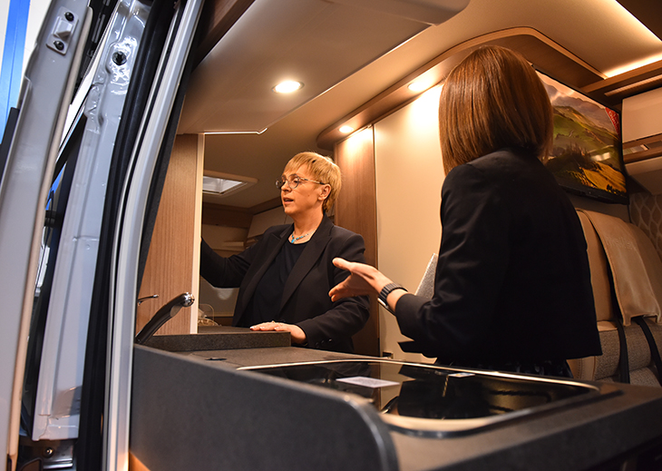 President Nataša Pirc Musar bekijkt een Malibu Van