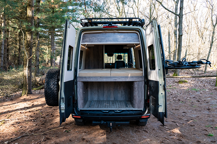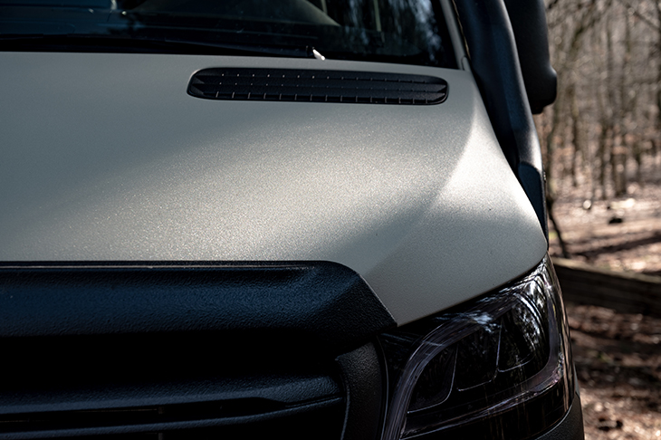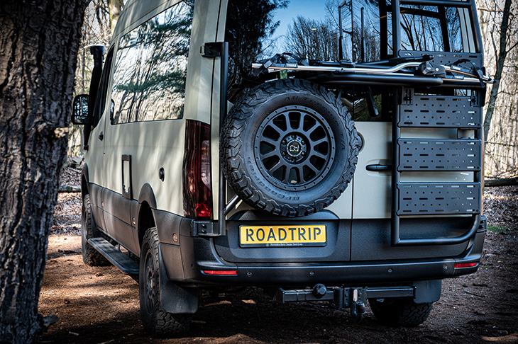Innova rust de Roadtrip Adventure Line uit met een hood spoiler die de Sprinter extra beschermt tegen bijvoorbeeld steenslag. Verder heeft de camper een pushbar, led-verlichting van Baja Designs, een roofrack en bodemprotectie. De buscamper staat op 17 inch Black Rhino-wielen met BF Goodrich-banden. Het roofrack – waar je op kunt staan – is geschikt voor het meenemen van bijvoorbeeld surfplanken, kisten en meer. Aan de voorkant zit een grote lichtbalk voor terreinen waar het echt aardedonker is.