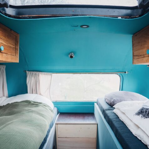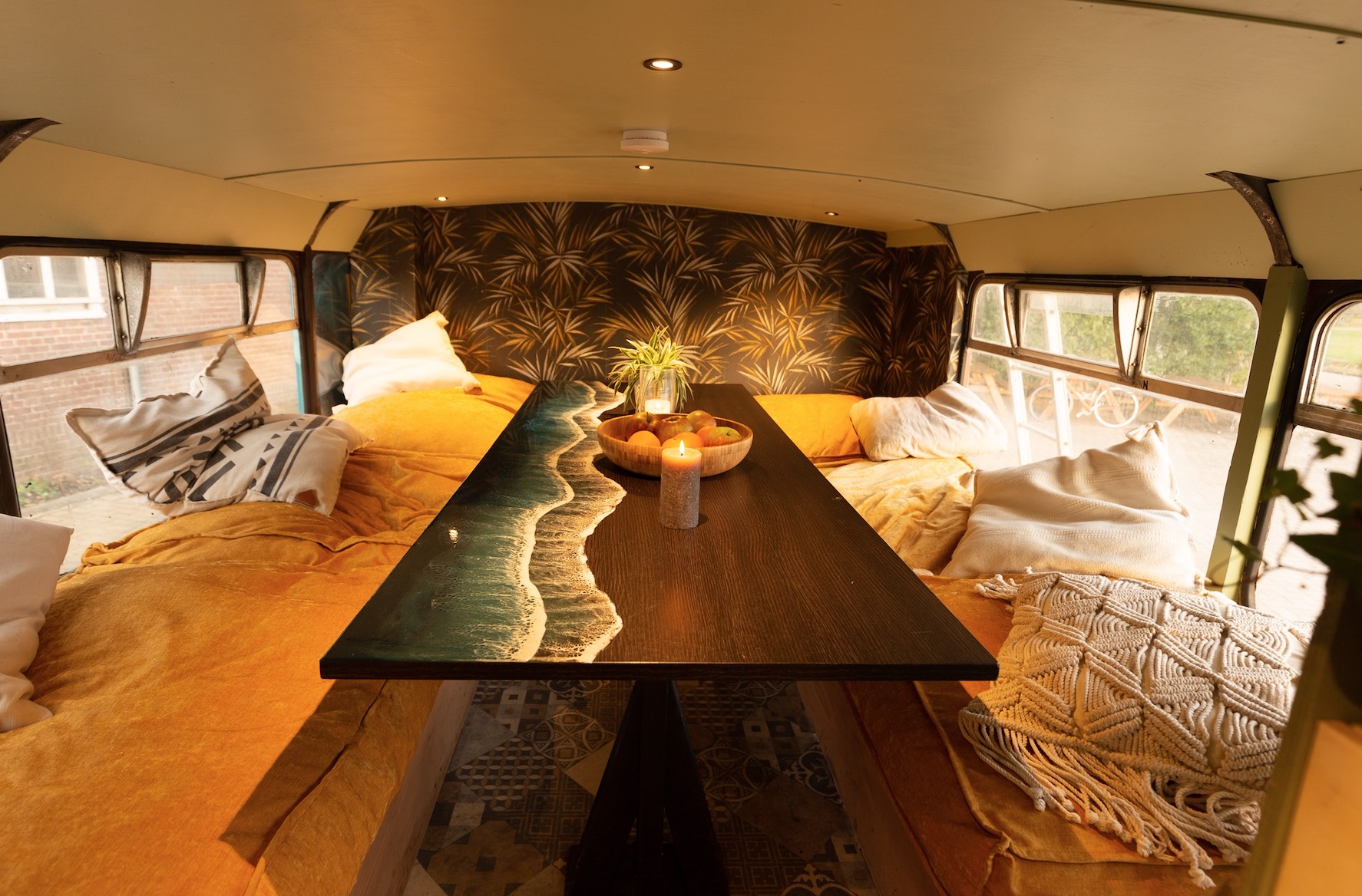Dat was te gek! We hebben het heel projectmatig aangepakt (het voordeel van allemaal in de productie van evenementen werken). De verbouwing ging dus vrij gestructureerd, we hadden verschillende fases benoemd die af moesten voor we aan de volgende konden beginnen. Eerst waterdicht maken en dan pas isoleren bijvoorbeeld. We hadden allemaal vrij weinig kluservaring en hebben veel kennis opgedaan door YouTube te kijken. En Google was our best friend. We belden partijen die er wel verstand van hadden en gingen het vooral gewoon dóén. We hebben daarnaast ook veel hulp van vrienden gehad. Het was ontzettend leuk en leerzaam om te doen en het voelt ook echt als onze bus en trots, nu we ‘m zelf helemaal hebben verbouwd.