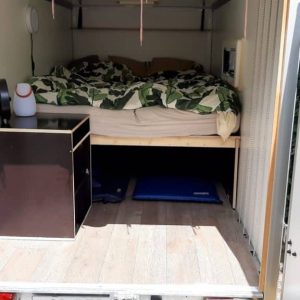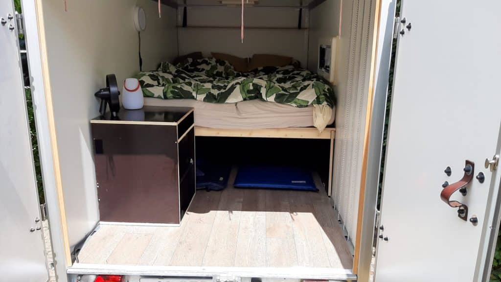 Kamperen doe je meestal niet het hele jaar door. Een caravan belandt doorgaans in een stalling, maar de Tiny Trip Trailer is ook te gebruiken als je niet kampeert. “Het bed en de koelkast kun je er eenvoudig uithalen. Zo heb je binnen vijftien minuten een gewone boedelbak”, aldus Daniël.