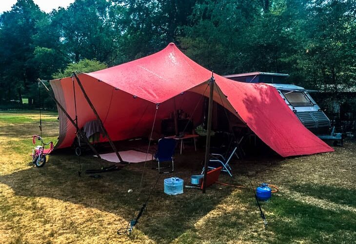 Met een caravan of camper ga je door de wasstraat voordat hij de stalling in gaat. Maar hoe doe je dat eigenlijk met een tent? Dat is wat betreft het bedrijf Tentcare net zo simpel. Die stop je aan het eind van het seizoen namelijk simpelweg in een hele grote XXL-wasmachine.