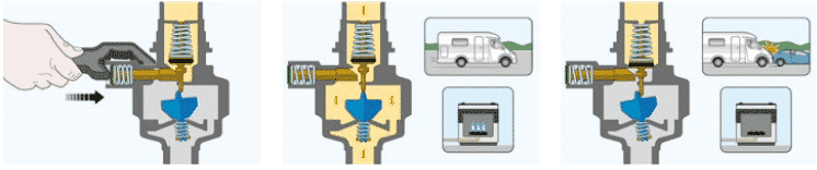 De nieuwe Carametic-crashsensor werkt met een pendel. Die sluit de gastoevoer af bij een ongeluk. Deze pendel maakt dat de sensor nauwkeuriger zijn werk doet, dat hij beter functioneert en dat de crashsensor ook goed zijn werk doet in schuine positie. Hij is er als DriveOne (foto boven artikel) voor één gasfles en als DriveTwo voor twee gasflessen (foto boven deze tekst).
