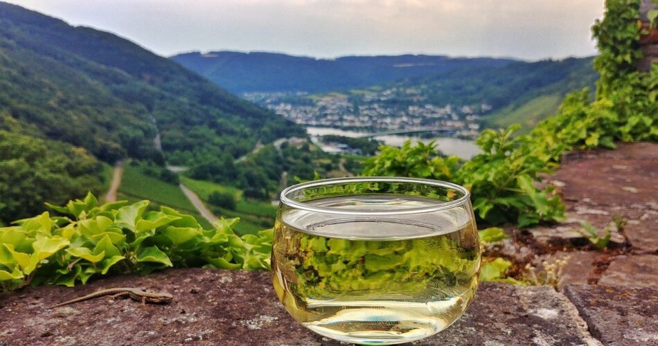 En dan komen we eindelijk uit bij de wijn. In de Moezelstreek kun je er niet omheen. De veelal op steile hellingen gelegen wijngaarden beslaan in totaal zo’n elfduizend hectare grond. De voornaamste druivensoort is Riesling.
