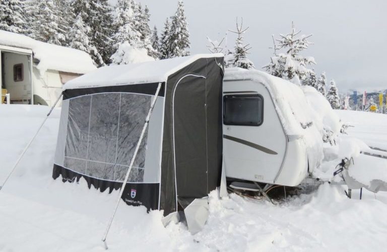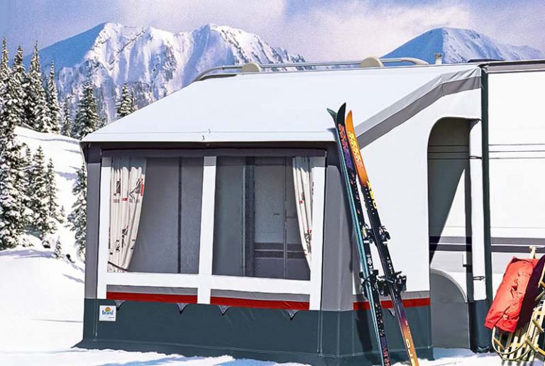 De voortent dient in de winter als een sluis tussen de koude buitenwereld en de behaaglijk warme caravan. Tevens is dit de plek waar je ski’s, schoenen en nog meer spullen kunt parkeren. Wat maakt een voortent tot een goede wintertent?