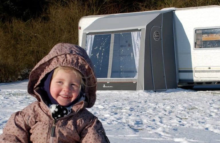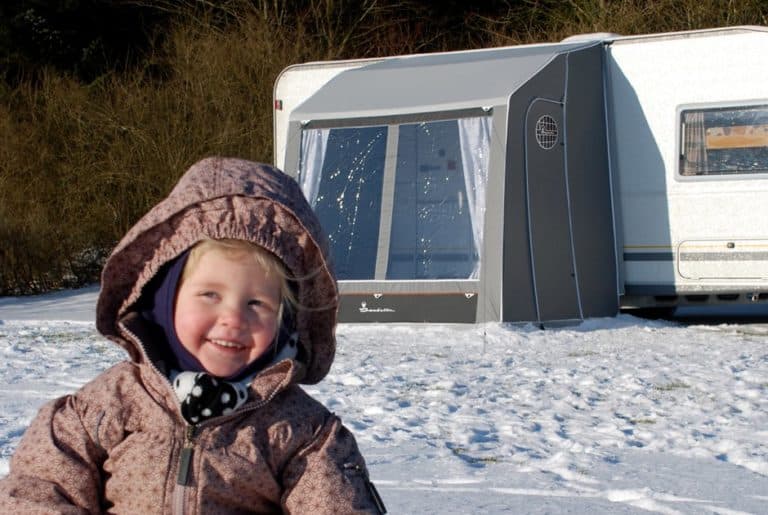 Kamperen in de winter zit er dit jaar misschien niet meer in. Heb je plannen voor 2021? Zorg dan voor een voortent die geschikt is voor winterkamperen. Een voortent moet in de winter namelijk aan andere eisen voldoen dan in de zomer. ’s Zomers wil je vooral zoveel mogelijk ruimte in de voortent. De tent strekt zich als het even kan nog wat langer uit dan de breedte van de caravan. Met daarin een hoek om te eten en een luie hoek met veldbed, plek voor de buitenkeuken en nog meer. In de winter is een kleinere tent, niet over de hele lengte van de caravan, aan te raden. We noemen dat een deeltent. Daarmee is ook het dak kleiner en daarmee de hoeveelheid sneeuw die erop kan blijven liggen. Dat dak loopt schuiner om er zoveel mogelijk sneeuw af te laten glijden. Met een extra stevige uitwendige slikrand hou je onder meer de kou buiten.