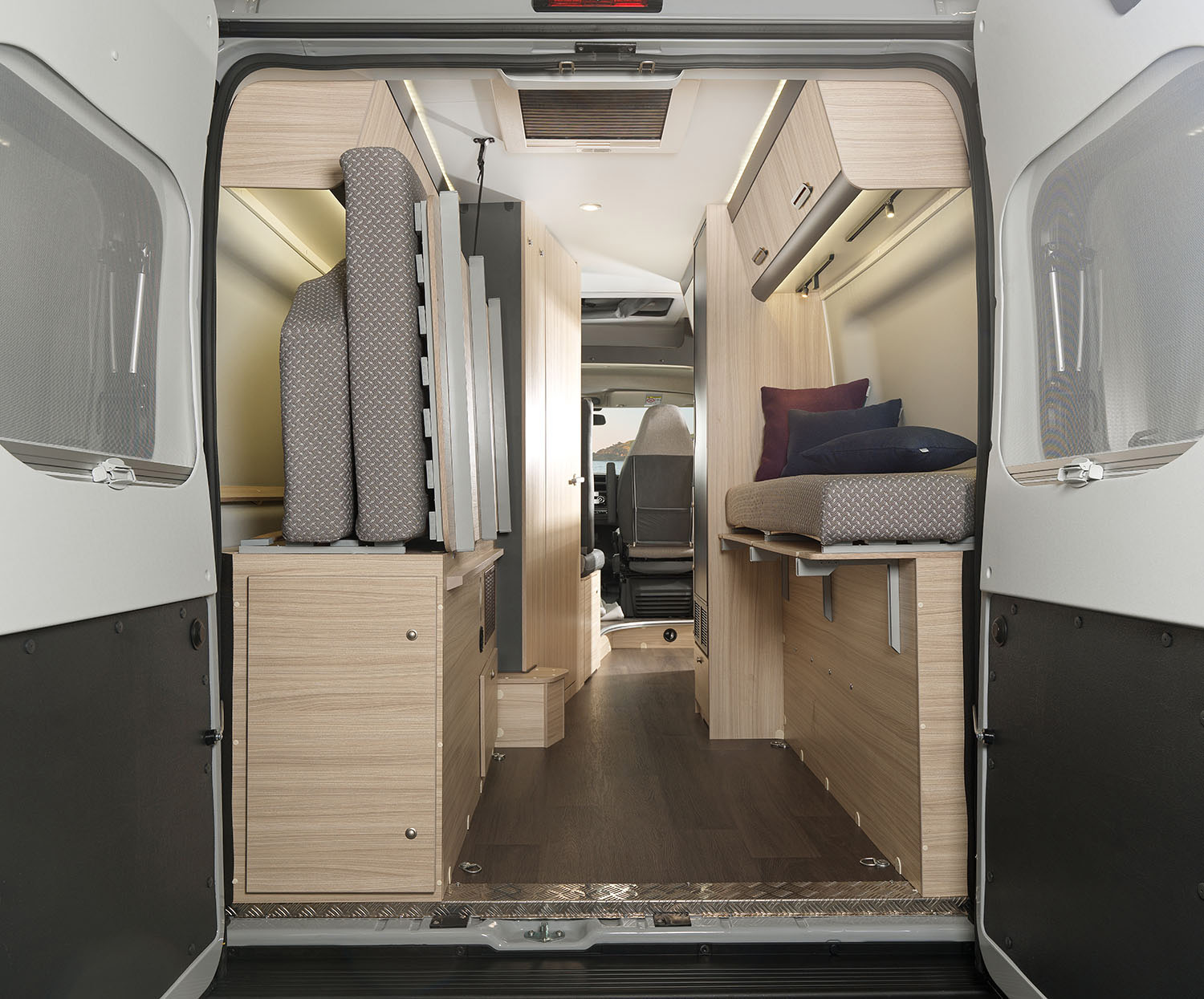Als basisvoertuig is er keuze tussen de Fiat Ducato en de Citroën Jumper. Ook in het interieur valt er wat te kiezen. De Sun Living V60 SP TentTop is namelijk verkrijgbaar met witte meubelfronten of met een houtdecor.