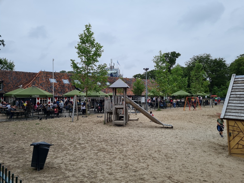 Als we maar een weekendje weg zijn, dan gaan we niet koken. De eerste avond haalden we wat bij de snackbar op de Plaza. De tweede avond wilde ik graag naar de kust rijden en lekker eten bij een strandtent. Het liep even anders en dus belandden we bij La Place restaurant De Schaapskooi, midden op het park. We waren hier wat aan de late kant, dus de keuze was beperkt. De hamburger smaakte echter prima en over de zalm en spareribs heb ik ook niemand horen klagen. Wil je een culinair hoogstandje, dan moet je toch echt het park af. Of zelf koken…