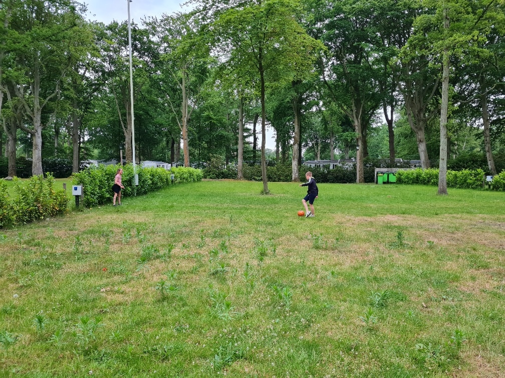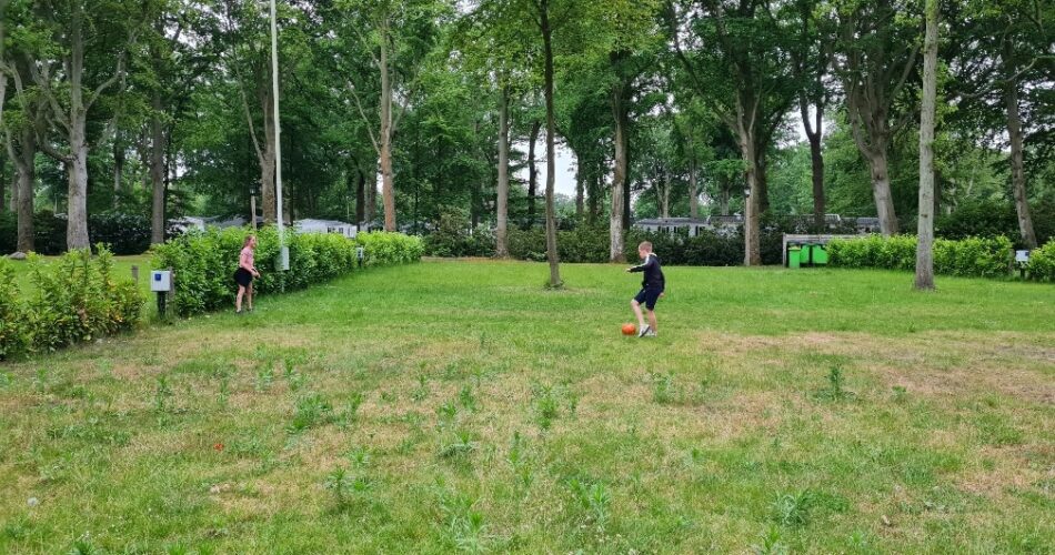 Over de kampeerplek kan ik kort zijn: die was ruim! We hoefden dus niet te passen en te meten om de caravan op zijn plek te zetten. Zelfs met de voortent er aan was er nog ruimte genoeg om lekker te voetballen en Kubb te spelen.