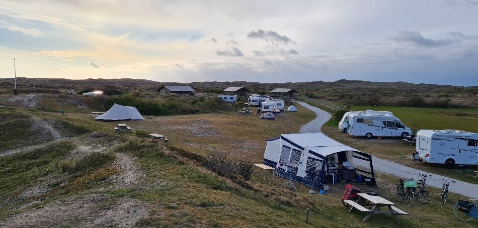 Het huisje waarin wij zaten stond aan de rand van het bungalowpark en keek uit op… de camping. Huh? Kamperen op Texel in een Landalpark? Yup, dat kan dus gewoon.