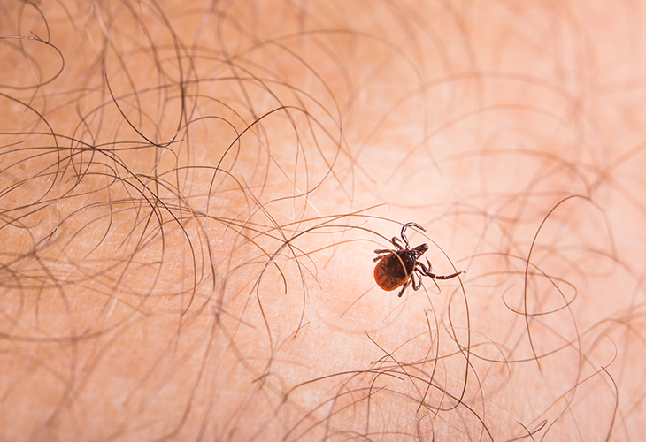 1 op de 5 teken is besmet met de Borrelia burgdorferi-bacterie die de ziekte van Lyme kan veroorzaken. Ontstaat er een rode ring of vlek op de plaats van de beet of krijg je last van koorts, gewrichts- of spierpijn, dan is het zaak contact op te nemen met je huisarts.