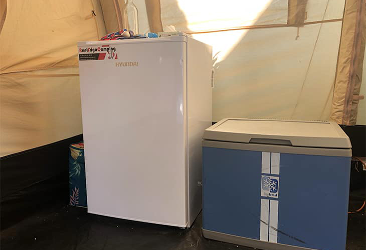 Bij de camping zelf of bij een bedrijf dat koelkasten verhuurt, je vindt ze online.