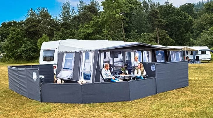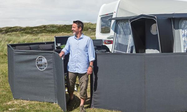 Isabella introduceert een handig driedelig mini-windscherm. Hiermee baken je een stuk bij de voortent of luifel af, zonder vrij uitzicht te verliezen. Ook handig om te voorkomen dat kleine kinderen of honden weglopen. Zo kun je relaxed achterover leunen.